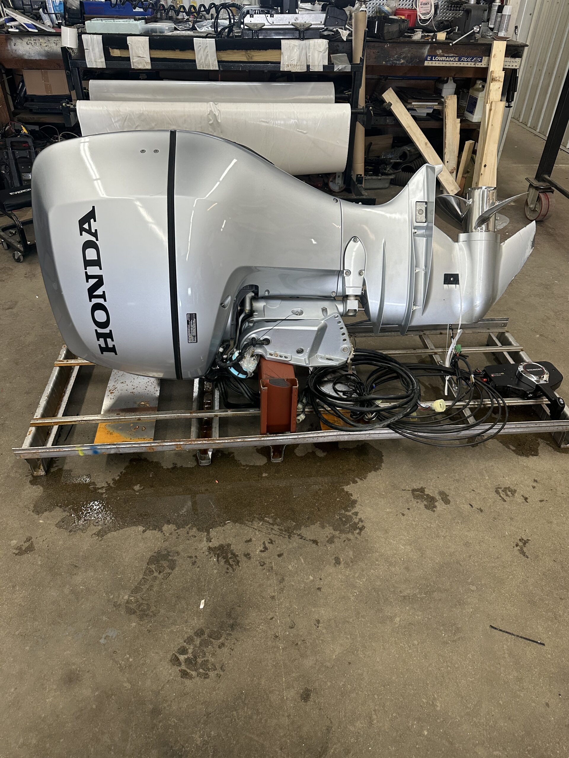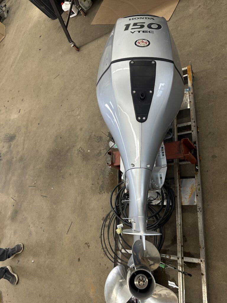 2017 HONDA 150HP OUTBOARD MOTOR WITH SIDE MOUNT CONTROLS AND CABLES. ONE OWNER MOTOR. NOT SURE OF HOURS CAN’T SCAN MOTOR. IN VERY GOOD SHAPE.
